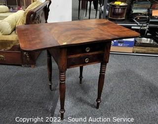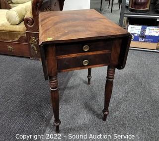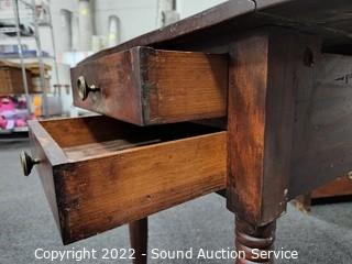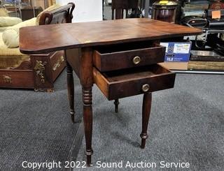 Lot #0016: Vintage Walnut 2-Drawer Drop Leaf Table