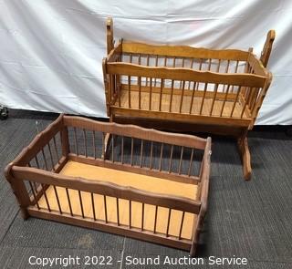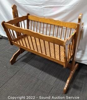 Lot #0342: Wood Bassinet / Crib & Hanging Bassinet Piece