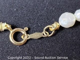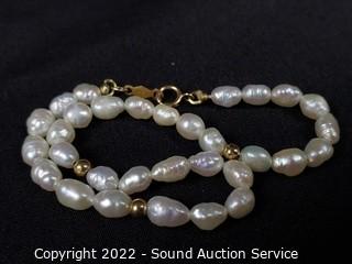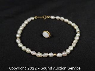Lot #0237: 14k Gold, Genuine Pearl 7" Bracelet & Opal Earring