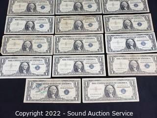 Lot #0238: 17 Old 1$ Silver Certificate Notes