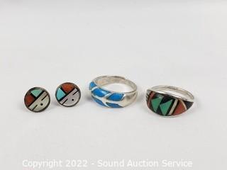 Lot #0228: 2 Native Sterling Rings & Earrings