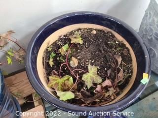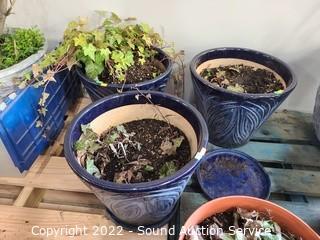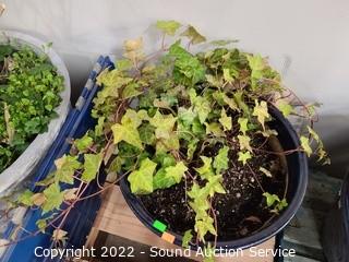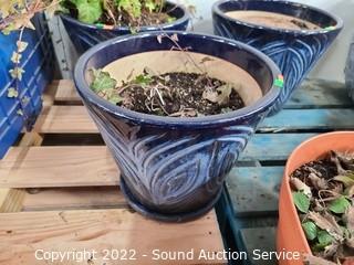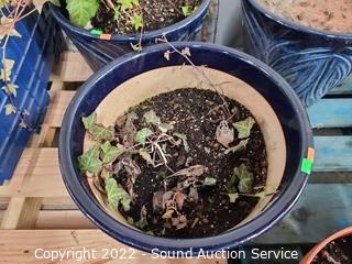 Lot #0044: 3 Matching Glazed Pottery Planters - 2 w/Ivy Plant