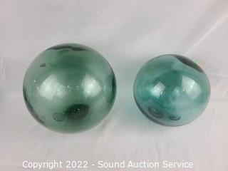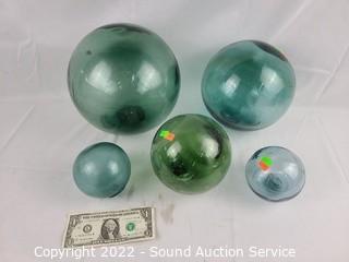 Lot #0215: 5 Vtg. Large hand Blown Glass Fishing Floats