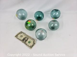 Lot #0214: 6 Vtg. Hand Blown Japanese Glass Fishing Floats