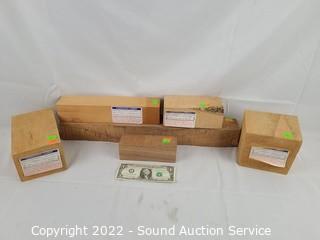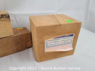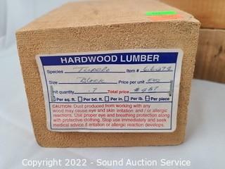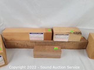 Lot Details: 3pc Tupelo, 1 yellow Cedar, & Mahogany? Approx. 2" x 2-1/8" x 6.25", 2.5' x 21", 5" x 5" x 5" 7 more.