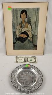 Lot #0163: Floyd Sunnier Pewter Plate & Gypsy Plaque Print