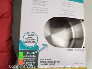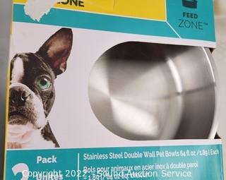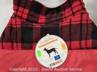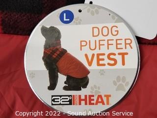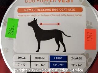 Lot #0376: Large Dog Puffer Vest & 2 Stainless Pet Feed Bowls