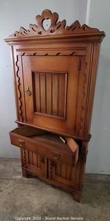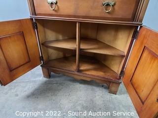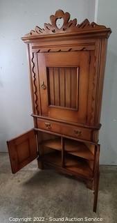 Lot #0048: Nice Carved Cherry Finish Corner Cabinet