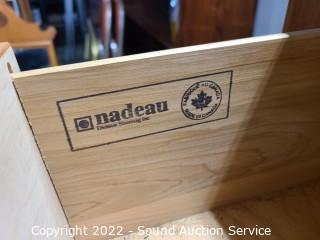 Lot Details: By Nadeau, made in Canada. Solid wood construction. Some light wear to the top, overall great condition. 45" H x 32" W x 20". Matches the next couple lots.