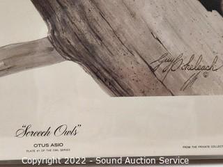 Lot #0097: Pair of Guy Poheleash? Owl Artwork Prints