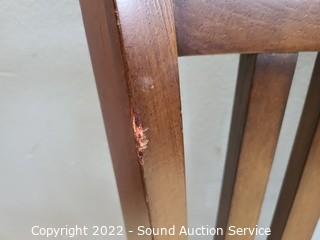 Lot Details: Both have dings on the back edge where it looks like consistently hit a counter, otherwise good condition. 42" H x 19" W x 24" to seat.