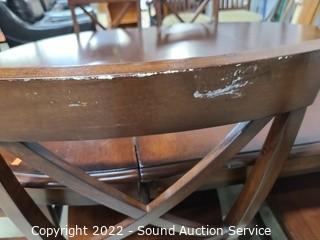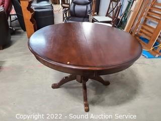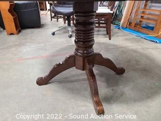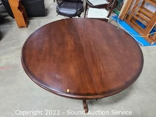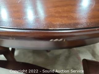 Lot Details: Some minor wear to the finish, 2 chairs are captains. 30" x 47.5" diameter with 20" leaf.