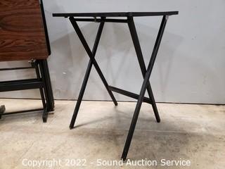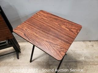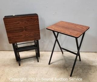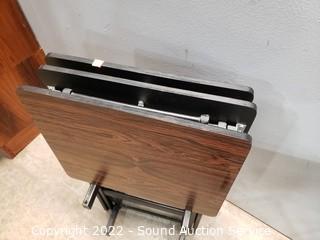 Lot #0004: Set of 4 Walnut? Finish TV trays w/Stands