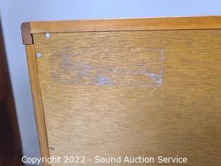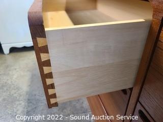 Lot Details: A few scuffs & scratches, overall great condition. Solid wood construction, dovetail joinery, very well made. 28.5" H x 19.5" W x 18.5" D. 6 drawers. Matches the previous few lots.
