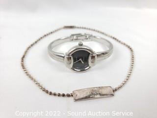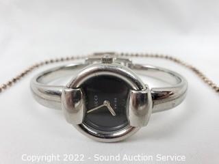 Lot #0233: Sterling Gucci 12" Choker Necklace & Quartz Watch