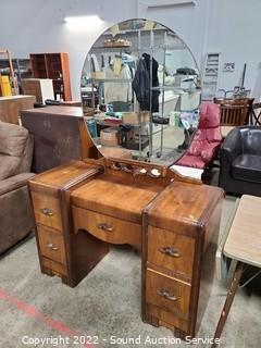Lot #0071: Vintage Waterfall 5-Drawer Vanity