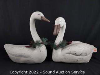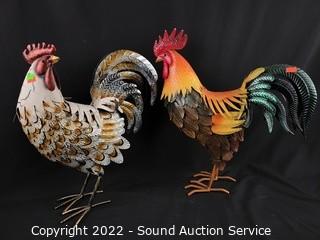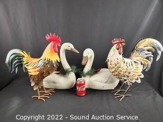 Lot Details: 16" H x 13" L & 18" H x 15" L roosters, 13" H x 15" L, 15" H x 17" L geese.