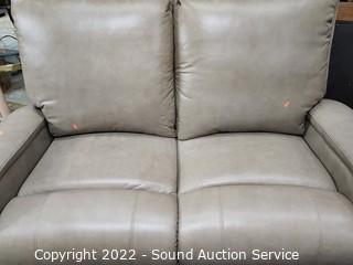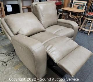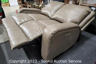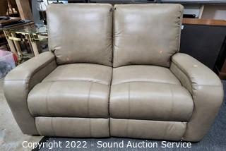 Lot #0020: Nice Taupe Leather Power Reclining Love Seat
