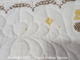 Lot #0132: Vtg. Cross Stitch Embroidered Quilt