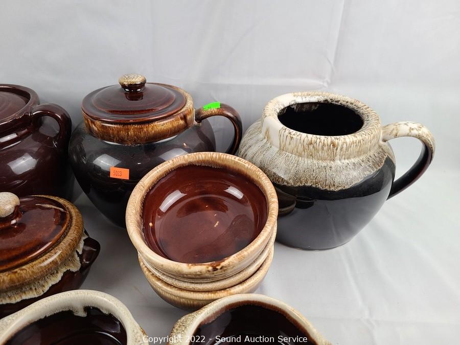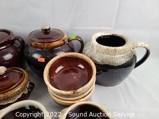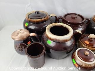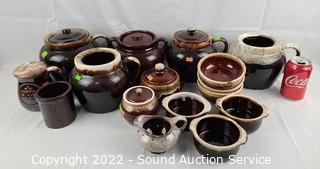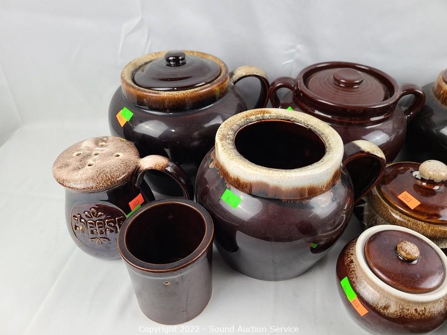 Lot Details: Assorted bean pots, crocks, cheese shaker, souffle dishes etc.