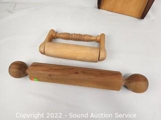 Lot #0100: 2 Wood Rolling Pins & Scoop Cutting Board