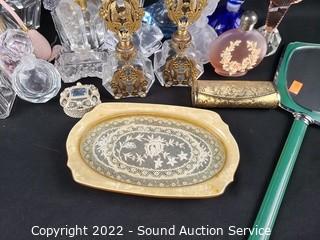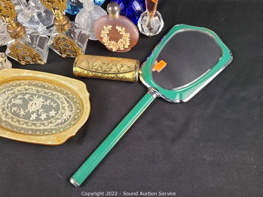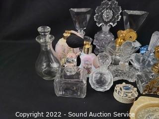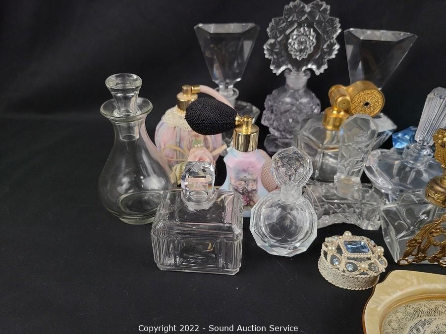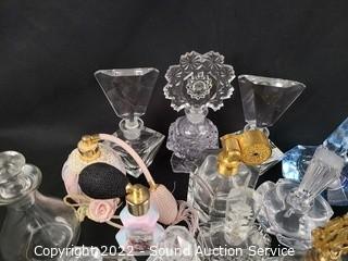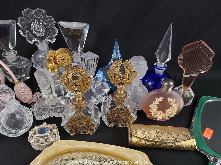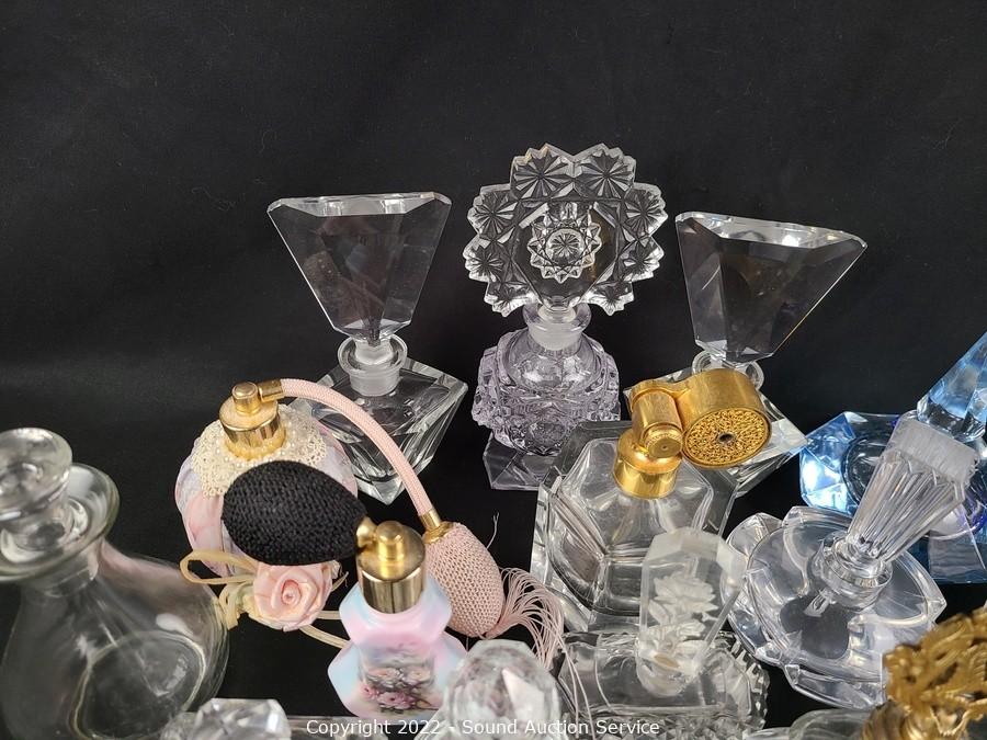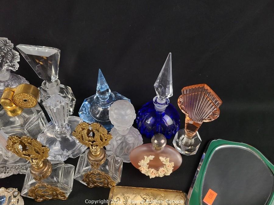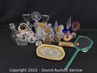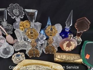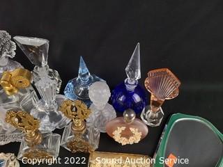Lot #0097: 22pc Vtg. Crystal & Other Perfume Bottles & Mirror