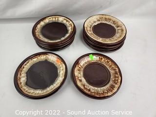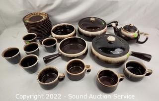 Lot #0117: 23pc Pfaltzgraff Brown Drip Stoneware Dishes