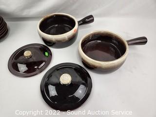 Lot Details: Teapot, 4 cooking pots w/2 lids, 5 ramekins, 10 snack plates, 4 cups. Don't see any issues, count does not include lid.