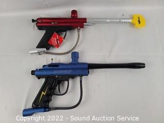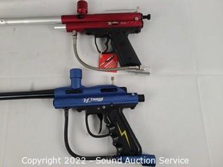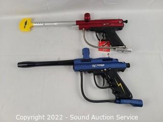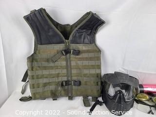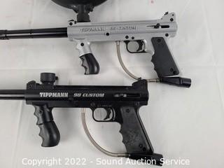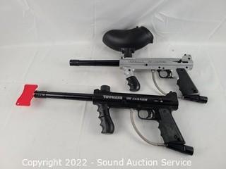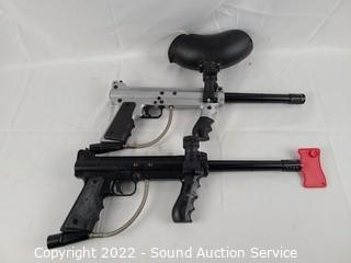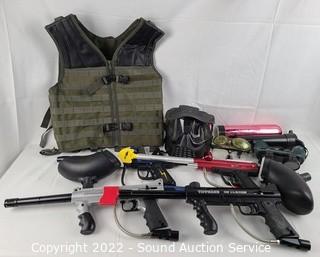 Lot #0335: 4 Paintball Guns, Goggles, Hoppers, CO2 Tank, Vest