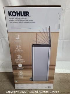 Lot #0403: Kohler 12.4 Gal Stainless Steel Step Trash Can