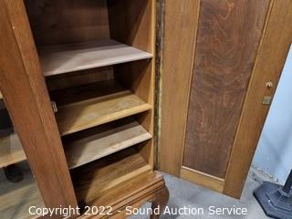 408 Lots including; Vtg. 1934 Crystal Sauna & Massage Parlor Safe, Victorian Oak Buffet, Hutch, Sideboard Set, Leather Barcalounger, Distinction Leather Sofa & Loveseat, Antique Victorian Mahogany King Headboard, Vintage Victrola Victor Talking Machine, Antique Marble Top Vanity Wash Station & Side Cabinet Set, Antique 1898 Singer Treadle Sewing Machine, Distinction Leather Wingback Chair w/Ottoman, Vintage Sears Vibrating Belt Ab Exercise Machine, Stoneware Crocks, 10" Japanese Fishing Float, Signed Kenrick Bronze? Jester Sculpture, Silver Plate Service Ware, Utility Storage Sheds, Pfaltzgraff Brown Drip Stoneware China, Vintage Pendulum Clocks, Vtg. Mahogany Bedroom Dresser Set, Vtg. Vintage Wardrobes, Vtg. & Antique Trunks, Nice Ladies Jackets, DVD's, Vtg. 78 Record Albums, Assorted Cookware, Vtg. Scientific Balance Scale w/Weights, Noritake Fine China, Nice Ladies Jackets, Assorted Holiday Decor, Tonka Toys, Diecast Cars, Assorted Household, Home Decor & So Much More!!!