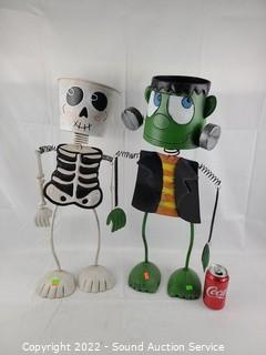 Lot #0142: 2 Metal Art Halloween Figures Candy Buckets