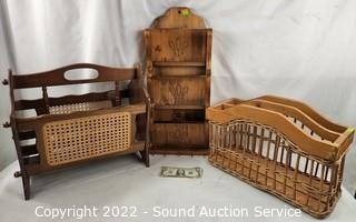 421 Lot including; Nice Oak Bedroom Set, Oak Living Room Table Set, Lighted Mirrored Oak Curio Cabinet, Collection of Nutcrackers, Various Christmas, Halloween & Autumn Decor, Acrylic Display case, Vtg. Lane Cedar Chest, Oak Mirrored Hall Tree Coat Rack, Linon Chelsea Collection 3pc Corner Nook Set, Wheelchair, Walkers, Emerald Home Tan Microfiber Reclining Sofa, Curio Cabinet, Samsung 55" Curved 4K Smart TV w/Remote, Recliners, Power Lift Chair, Various Tools, Tuning Forks, Marbles, Assorted Ladies Handbags, Scarves, Assorted Hallmark Keepsake & Other Ornaments, Various String Lights in Original Packaging, Nativity Scenes, Assorted Quilting & Sewing Fabric, Vtg. Hanging Swag Lamps, Wood Boards, Concrete Blocks, Various Artwork, Various Literature, Record Albums, Collectibles Household Goods & So Much More!!!