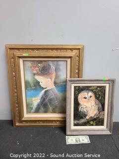 Lot Details: Owl signed Jonni 13" x 16" & Child also signed, can't make out signature, refer to photos, 20" x 24".