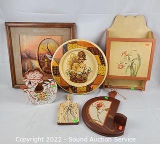 421 Lot including; Nice Oak Bedroom Set, Oak Living Room Table Set, Lighted Mirrored Oak Curio Cabinet, Collection of Nutcrackers, Various Christmas, Halloween & Autumn Decor, Acrylic Display case, Vtg. Lane Cedar Chest, Oak Mirrored Hall Tree Coat Rack, Linon Chelsea Collection 3pc Corner Nook Set, Wheelchair, Walkers, Emerald Home Tan Microfiber Reclining Sofa, Curio Cabinet, Samsung 55" Curved 4K Smart TV w/Remote, Recliners, Power Lift Chair, Various Tools, Tuning Forks, Marbles, Assorted Ladies Handbags, Scarves, Assorted Hallmark Keepsake & Other Ornaments, Various String Lights in Original Packaging, Nativity Scenes, Assorted Quilting & Sewing Fabric, Vtg. Hanging Swag Lamps, Wood Boards, Concrete Blocks, Various Artwork, Various Literature, Record Albums, Collectibles Household Goods & So Much More!!!