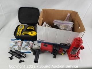 Lot #0139: Laser Level Kit, Angle Grinder & Other Tools