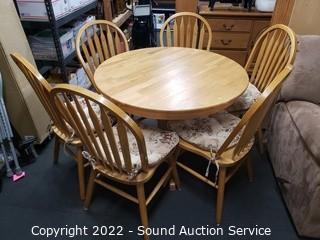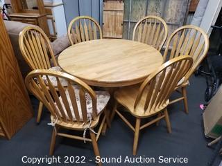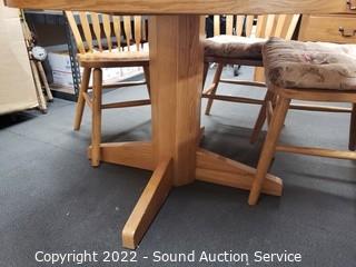 Lot #0069: Round Oak Dining Table w/6 Chairs
