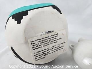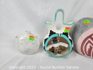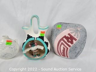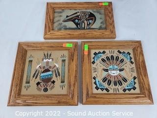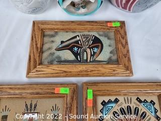 Lot #0101: 3 Navajo Sand Painting Artwork & 3 Vases