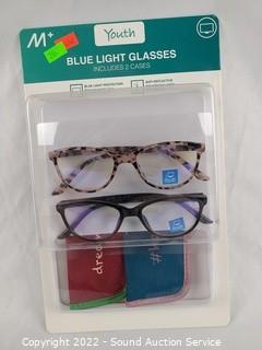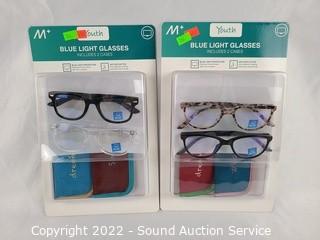 Lot #0266: 4 Pairs Youth Blue Light Glasses w/Cases