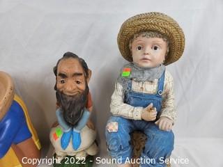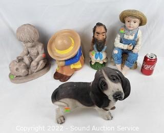 Lot #0131: 5pc Pottery, Concrete, Composite Yard Art Figures