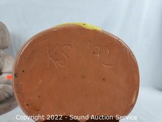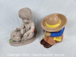 Lot Details: Austin Prod. Besunder 1973 signed pottery, KS '92 signed pottery, concrete gnome & ceramic dog & boy figure. 9" to 13" tall.