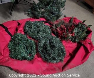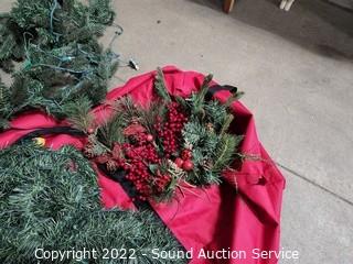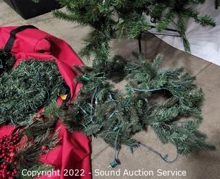 Lot Details: Comes with stand, storage bag, 4 pieces of pre-lit garland and other decor. All works.