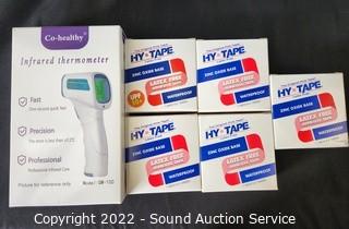 Lot Details: Body covers, sanitizing wipes, goggles, face masks, alcohol prep pads, adhesive tape, face shields, infrared thermometers.