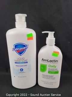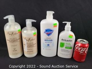 Lot Details: 40oz Safe Guard Liquid Hand Soap, 20oz Amlactin Daily Moisturizing Lotion, 34oz Shea Moisture Coconut Shampoo.