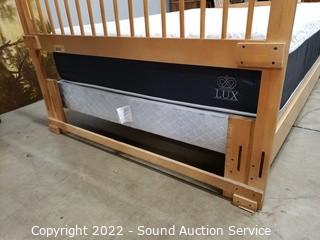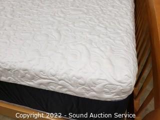 Lot Details: Nice Sound Sleep Lux Hybrid mattress, 59.5" x 79". 30" & 50" tall headboard & footboard, 82" long rails. Box spring is a bit dirty, but hidden by rails.