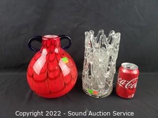 Lot #0098: Pier 1 Art Glass Jug/Vase, Art Glass Hurricane
