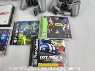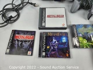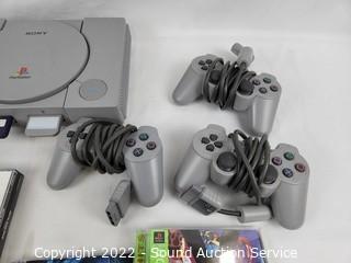 Lot #0129: Playstation w/3 Controllers, Games & Memory Cards