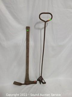 Lot #0281: Rustic Cutting Mattock & Branding Iron
