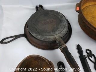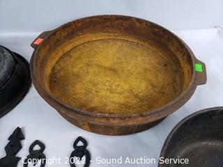 423 Lots including; Firearms (Rifles, Pistols, Ammunition), Recliners, Octagon Folding Poker Table, Maple Finish Bedroom Set, Vintage Red Painted Kitchen Queen, Decorative Wrought Iron Dress Form, Tons of Sewing Fabric, 20th Anniversary Grace Co. Quilting Machine Table, Original Harley Davidson Exhaust System, Gray Fabric 2pc Sectional w/Ottoman, Nice Grey Fabric Sofa, White Painted Hall Tree Entryway Bench, Vintage Monarch Malleable Cast Iron Stove, Antique Koken Cast Iron & Leather Barber's Chair, Green Painted Pine Corner Cabinet, Vintage John Deere Hit-and-Miss Engine, BeerLight, Signs, Stools, Smoker, Lawn Mower, Parts Wash Station, Compressor, Tons of Cast Iron Cookware, Stamps Collection, Barbies, China, Kitchen, Decor, Leather Jackets,Canning Jars & So Much More!!!