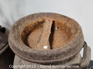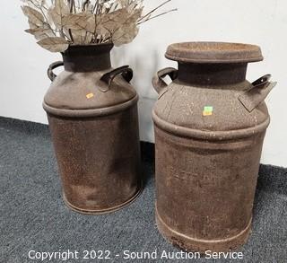 Lot #0056: 2 Rustic Steel Milk Cans - 1 w/Reed Decor